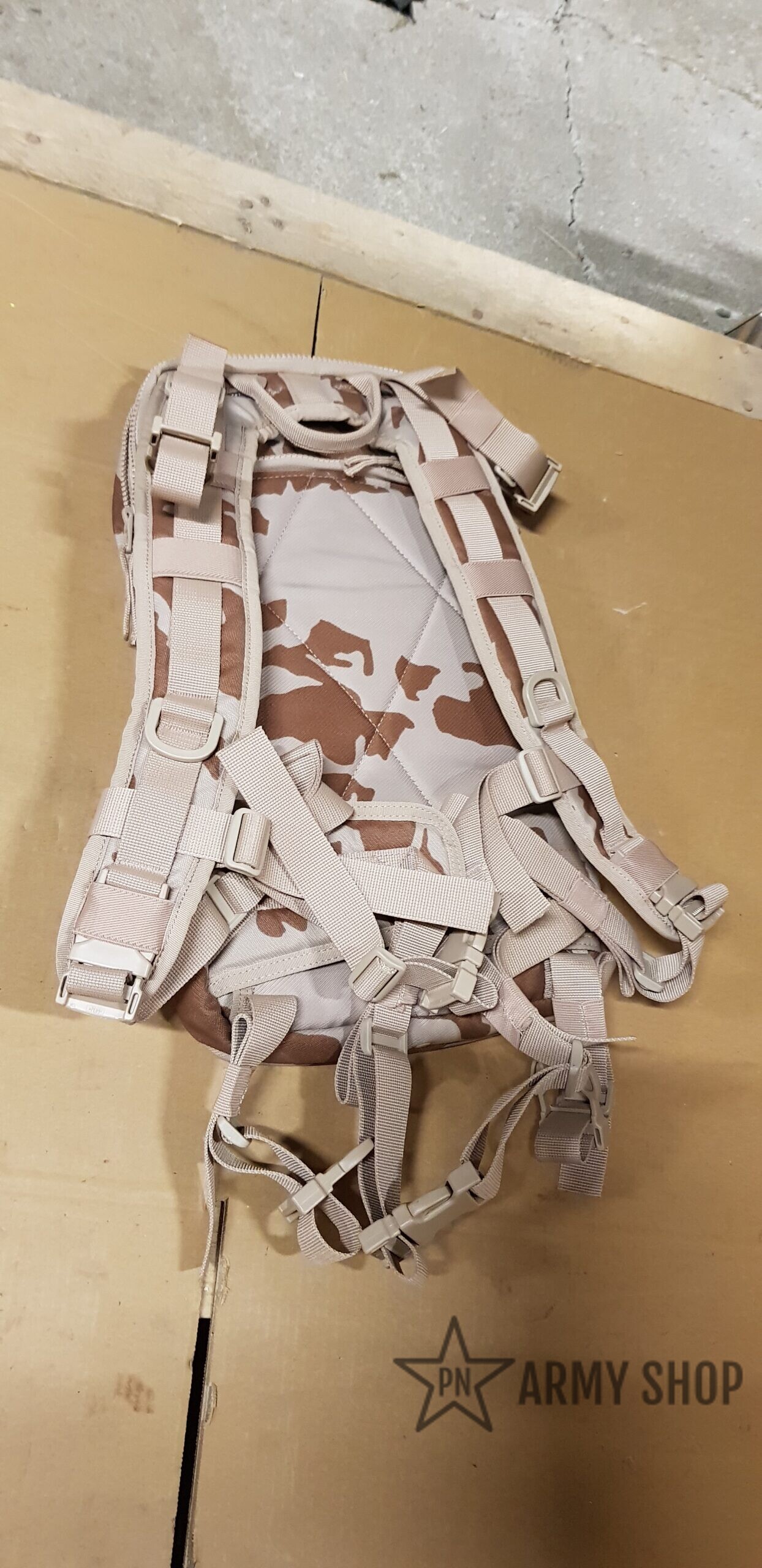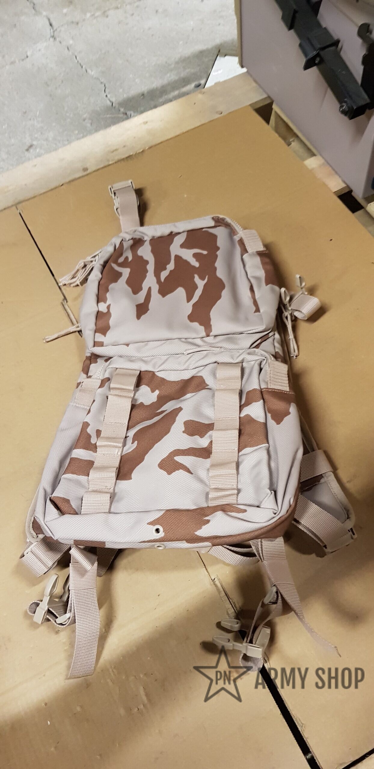 Batoh od soupravy camelbagu, samotný batoh bez vaku na vodu, součástí bederní i hrudní pás, v pouštním provedení, od výrobce SPM Liberec, konkrétní kus viz foto, dá se samozřejmě používat jako normální batoh, na „camelbag“ je tam jen ta úprava na provlečení hadičky od pitného vaku