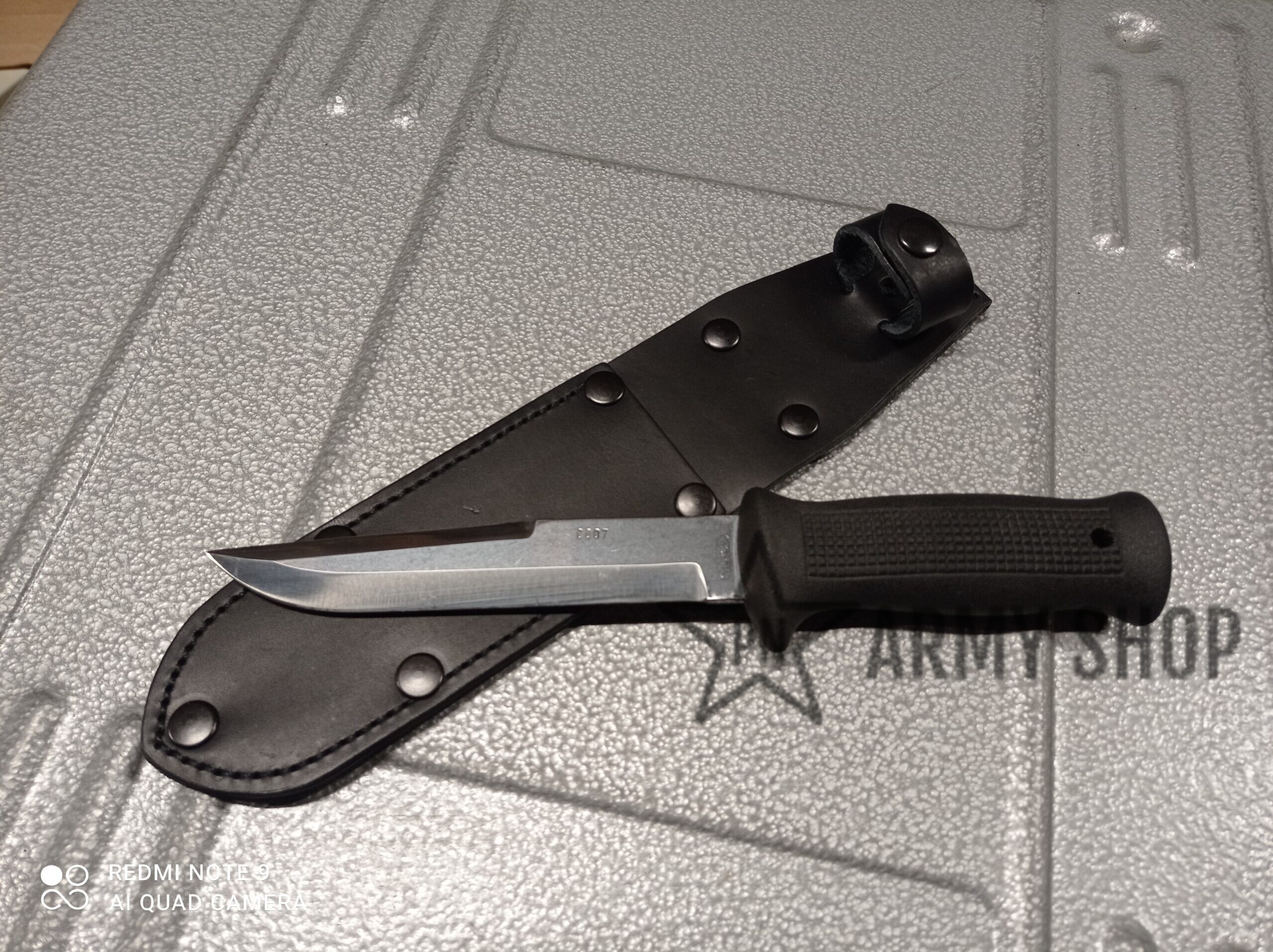 Nůž typu UTON 0007, pryžová rukojeť, tvrdost 55-57 HRC, s černým koženým pouzdrem bez kapsy na nářadí, tak jak je na fotografiích, cena je za sadu, tzn. nůž + pouzdro
