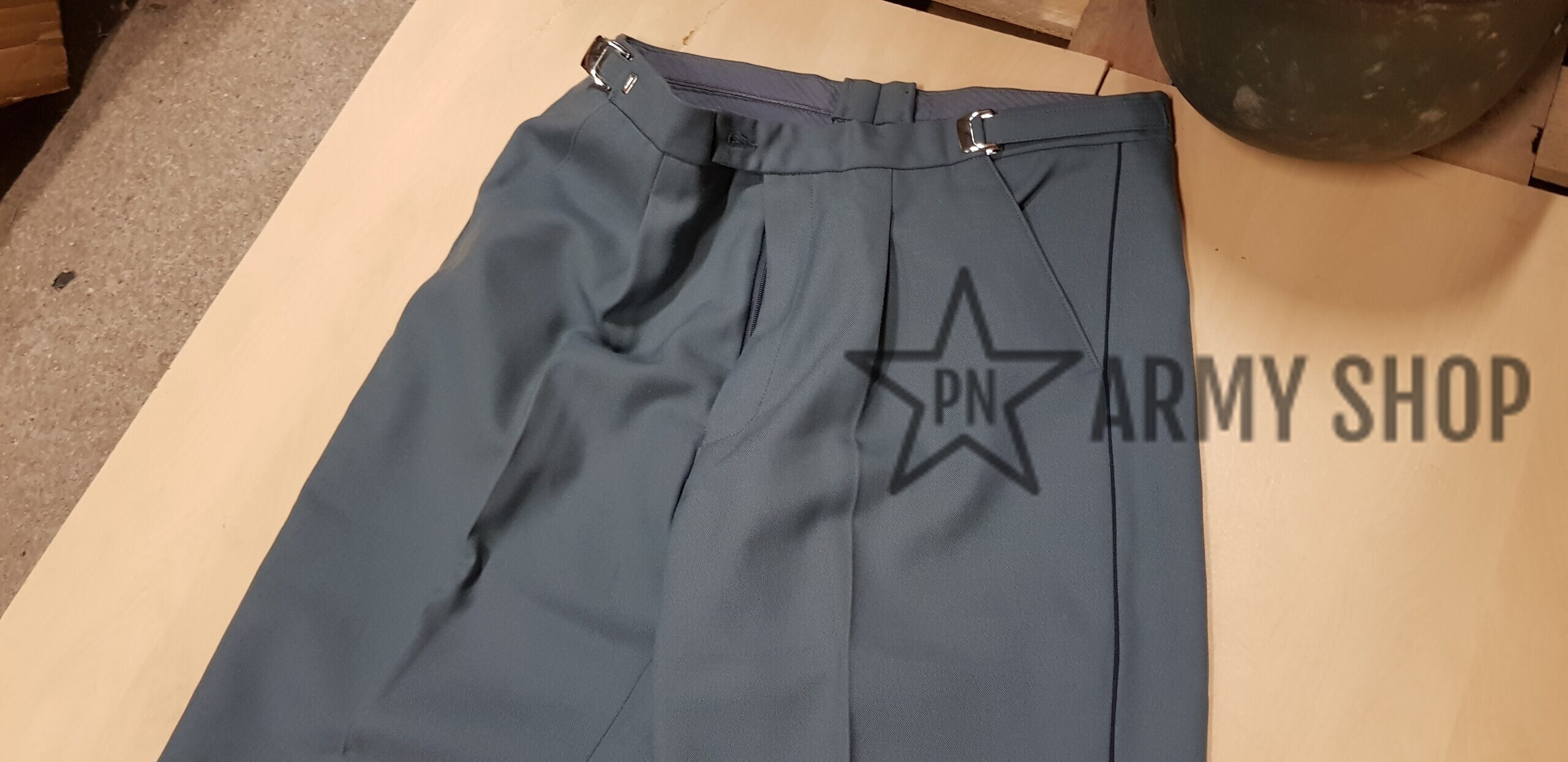 Kalhoty k modré uniformě vz.97, jedná se o vycházkovou variantu, tzn, kalhoty jsou světlejší než sako, velikost 176-000-82, konkrétní vyfocený kus