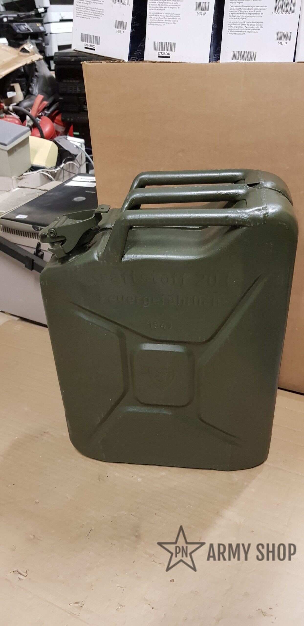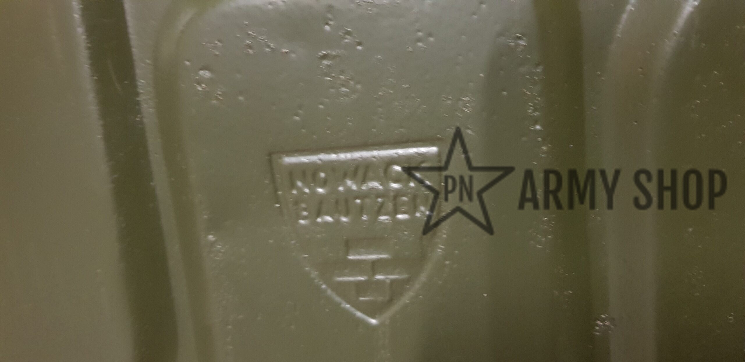Použitý kanystr wehrmachtu, z boku zdeformovaný, konkrétní kus
