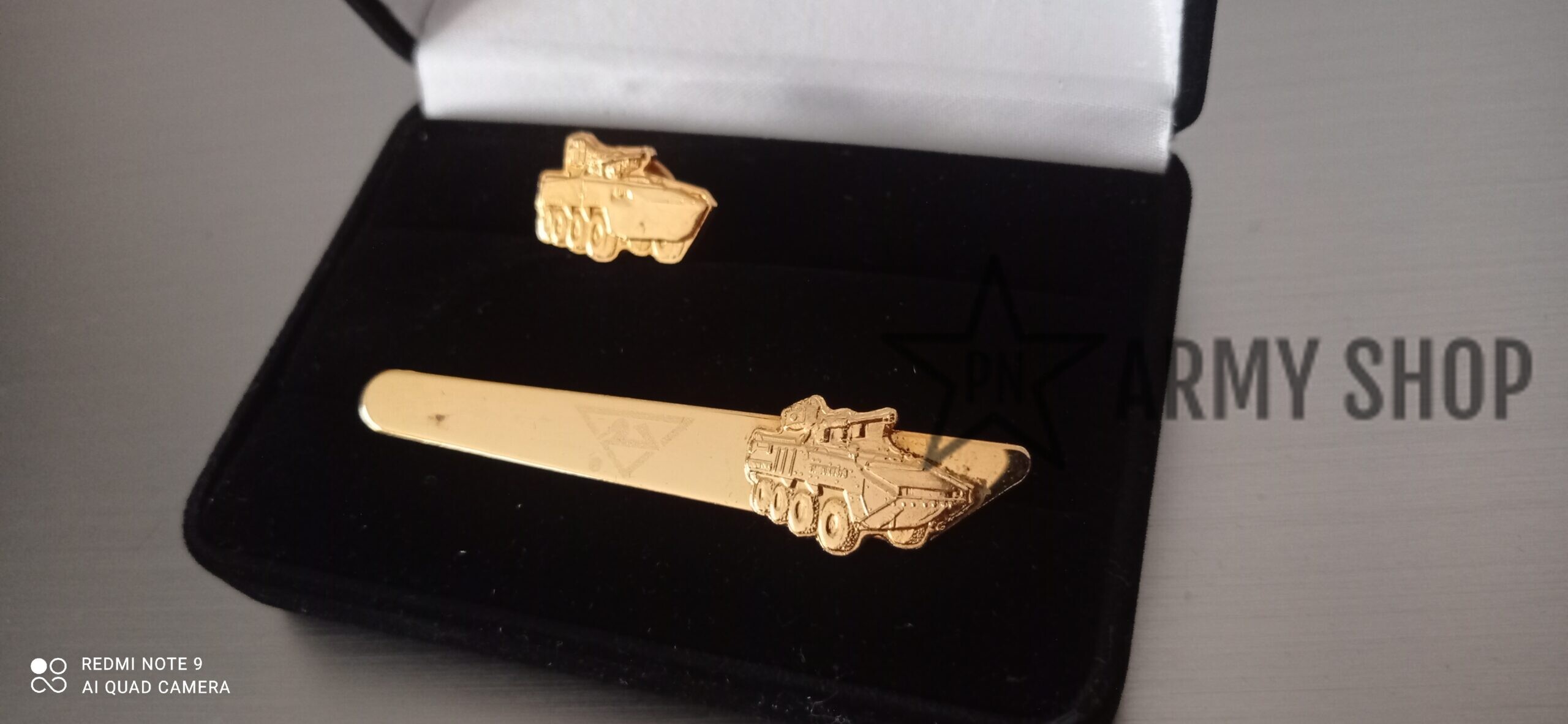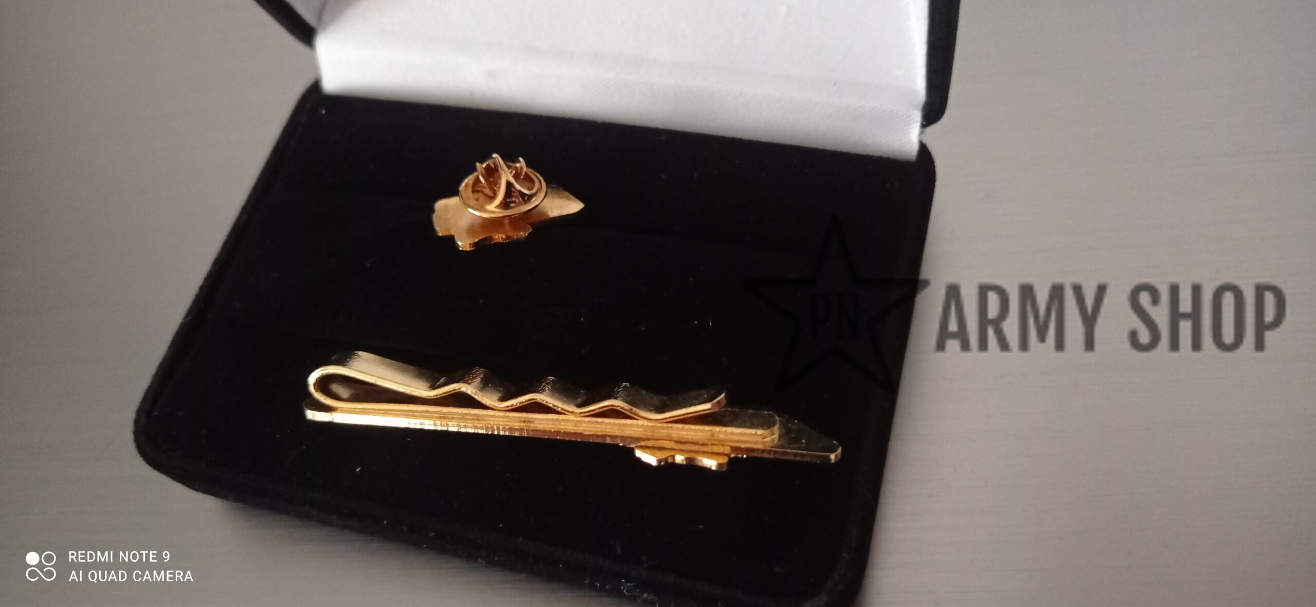 Kravatová spona a odznak na pin, s vyobrazením Panduru, sada v krásné semišové krabičce