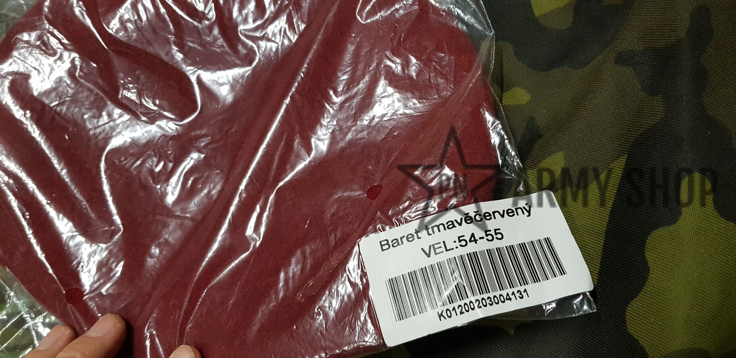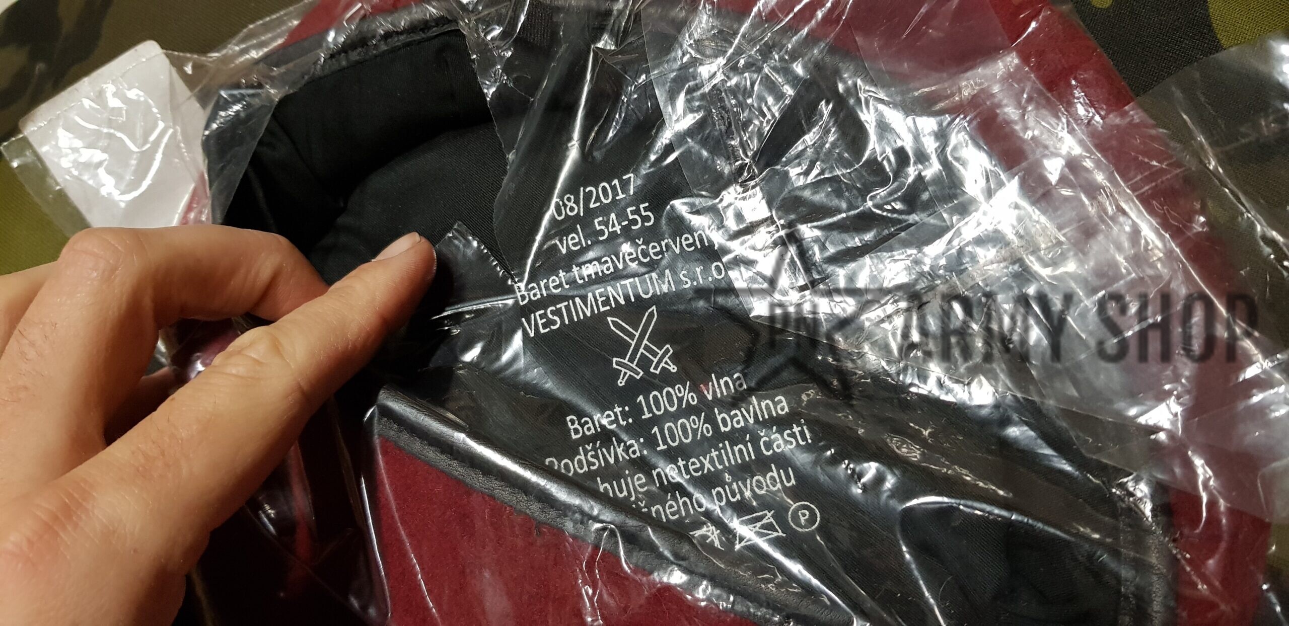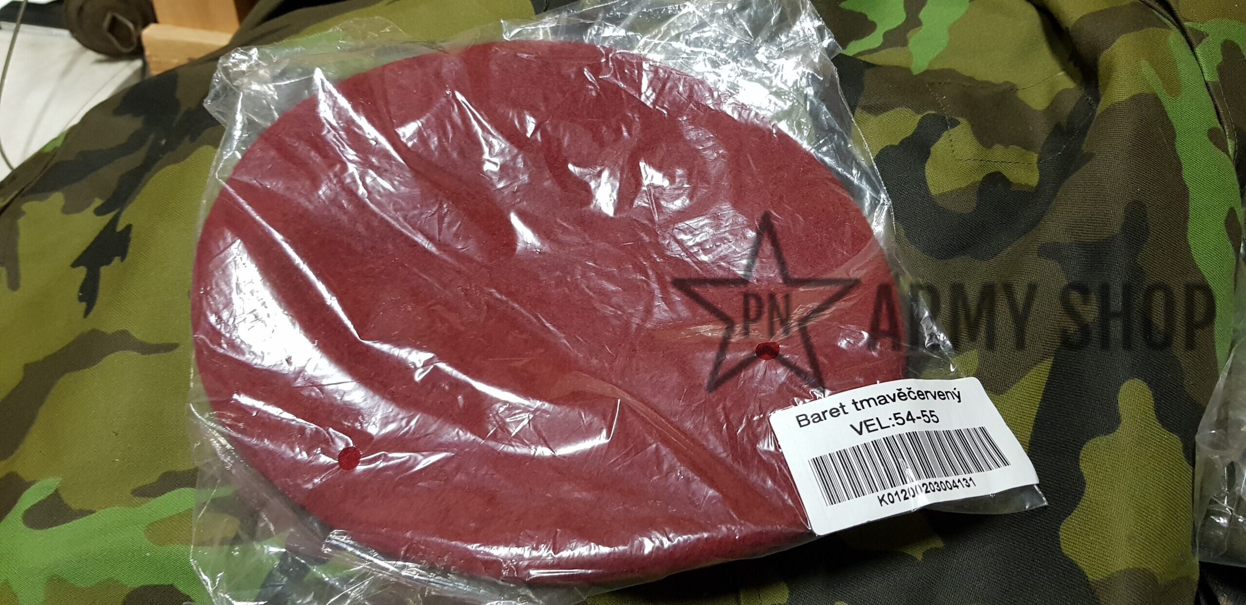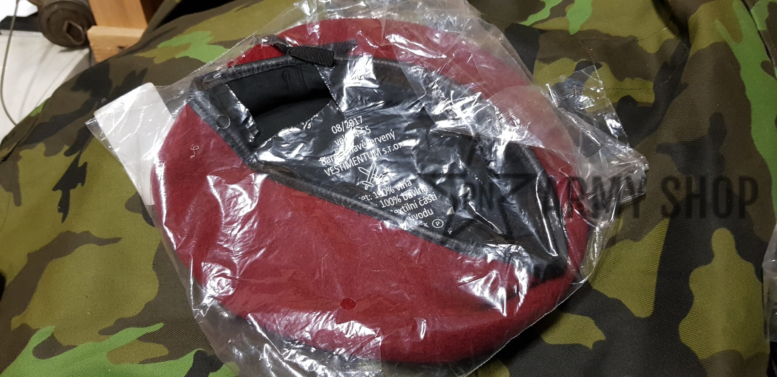 Nepoužitý červený baret ačr pro výsadkáře z vyřazených zásob ačr, konkrétní nafocený kus