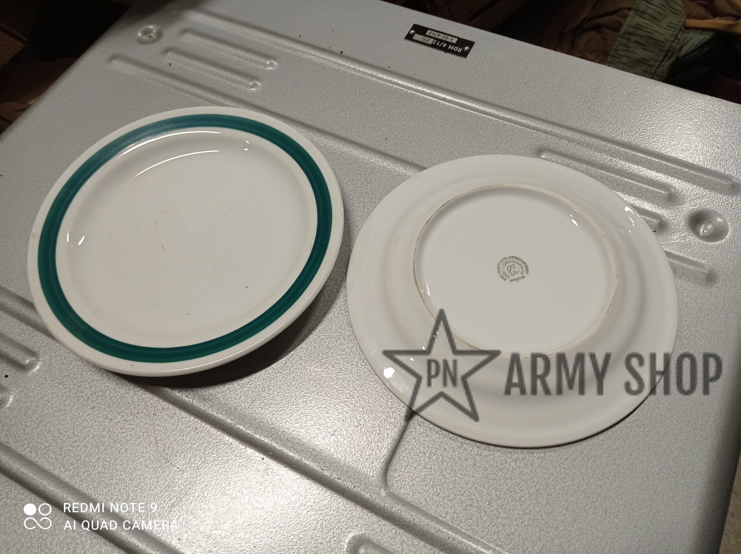 Nepoužitý porcelánový dezertní talíř československé, následně české armády, dlouhodobě skladované zboží