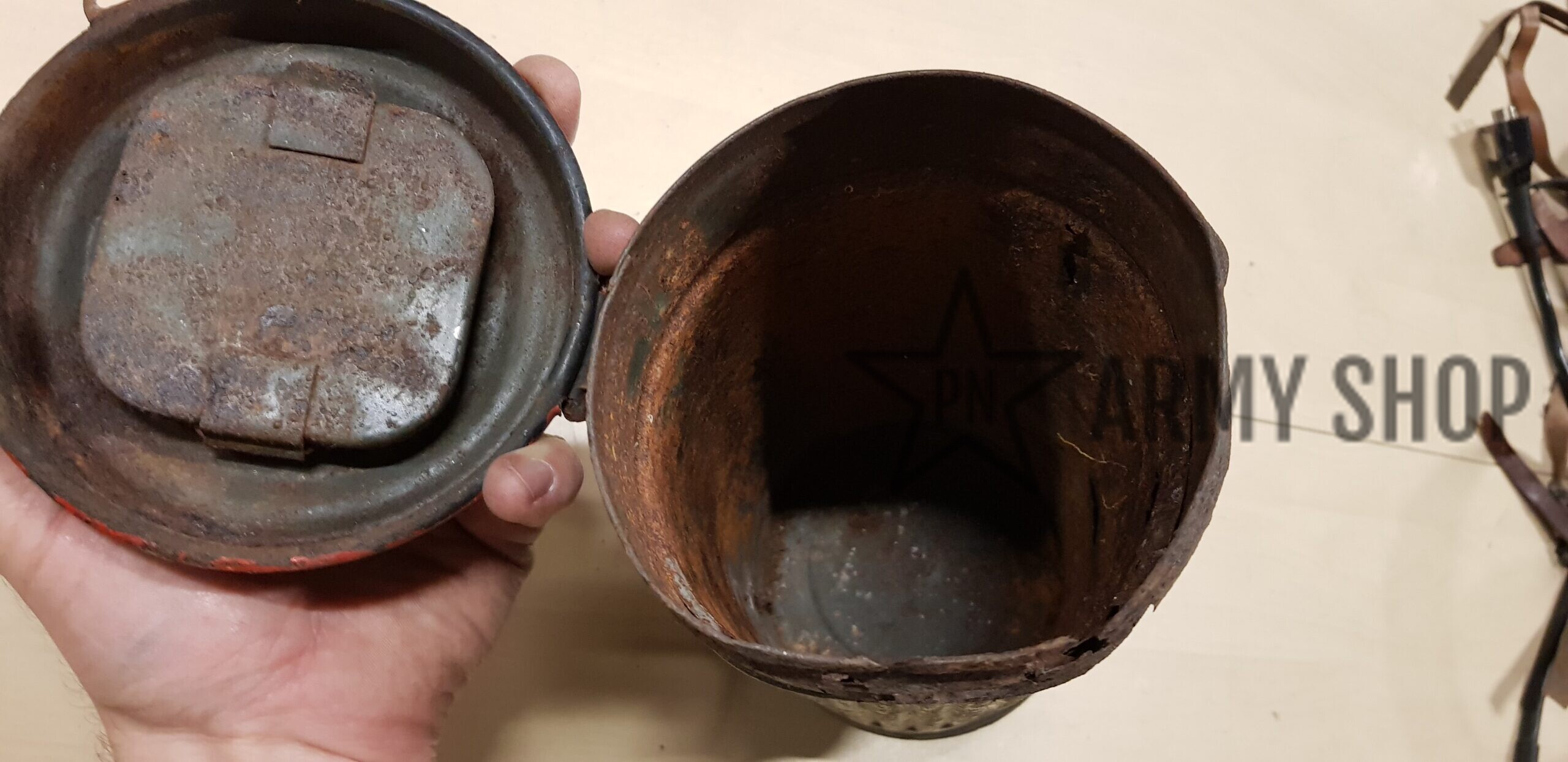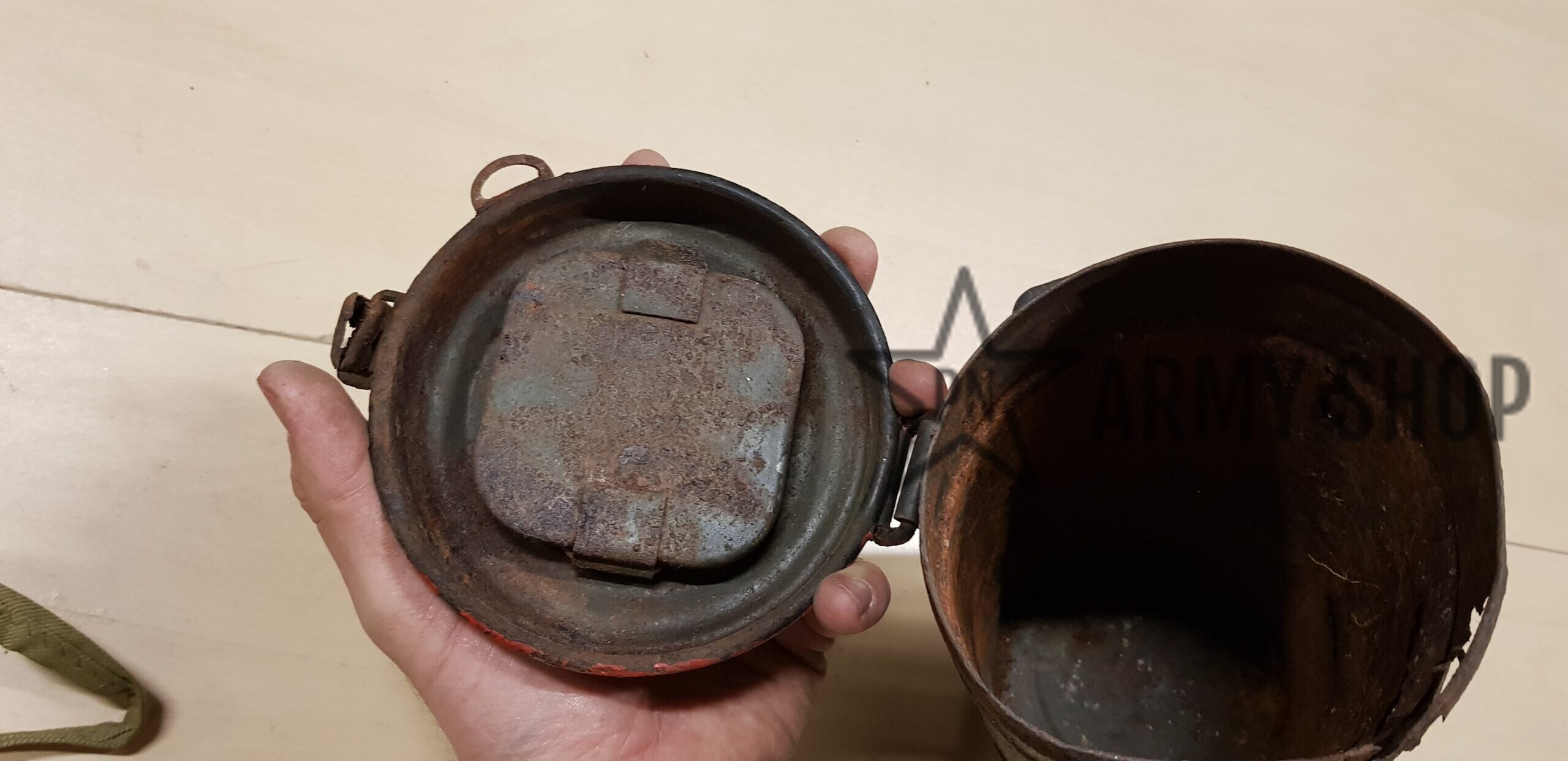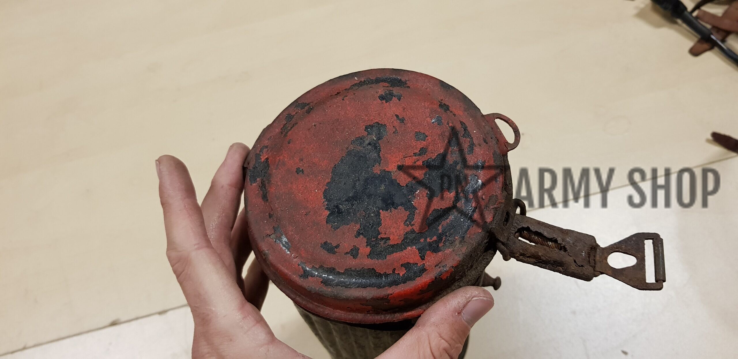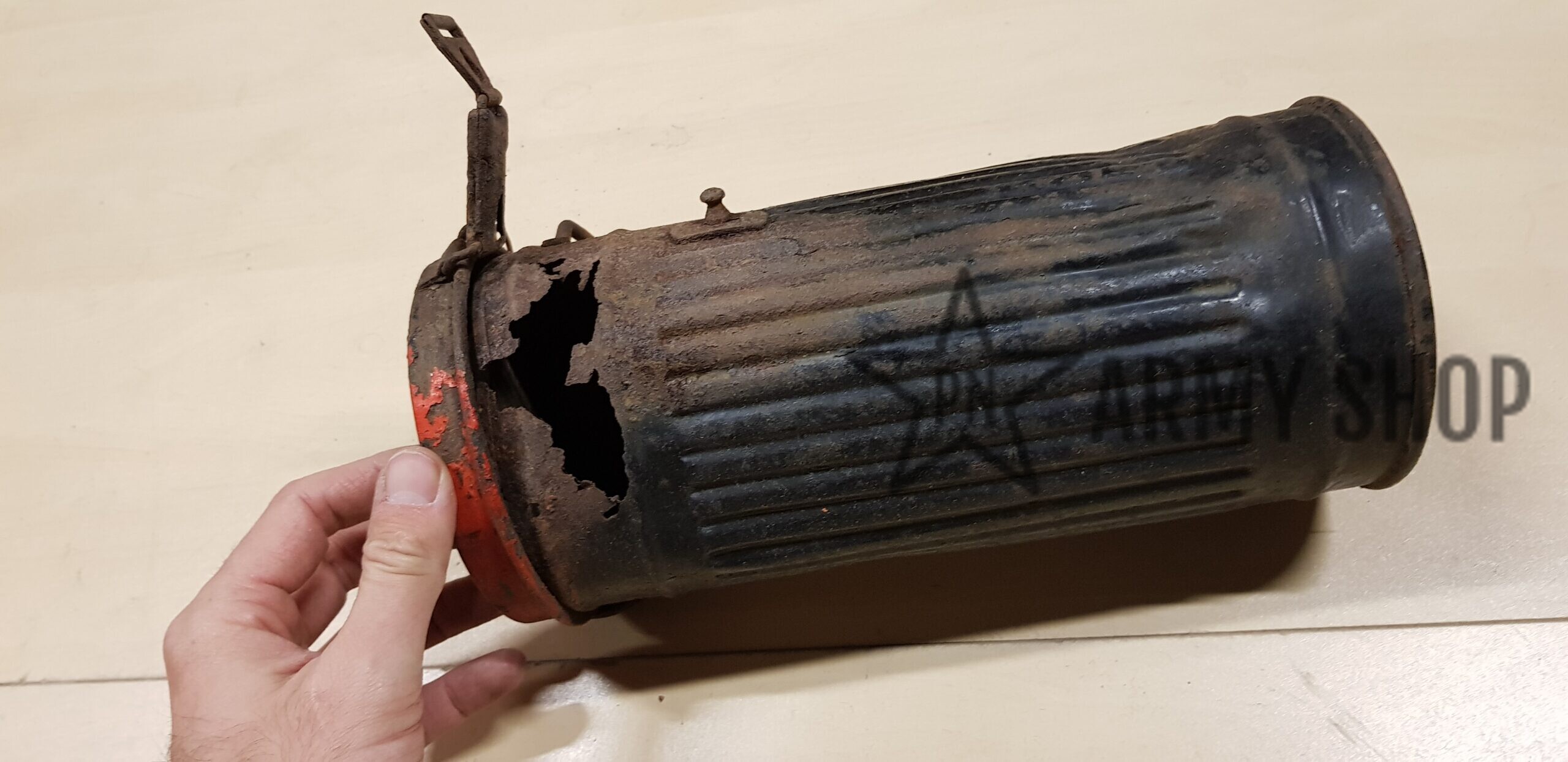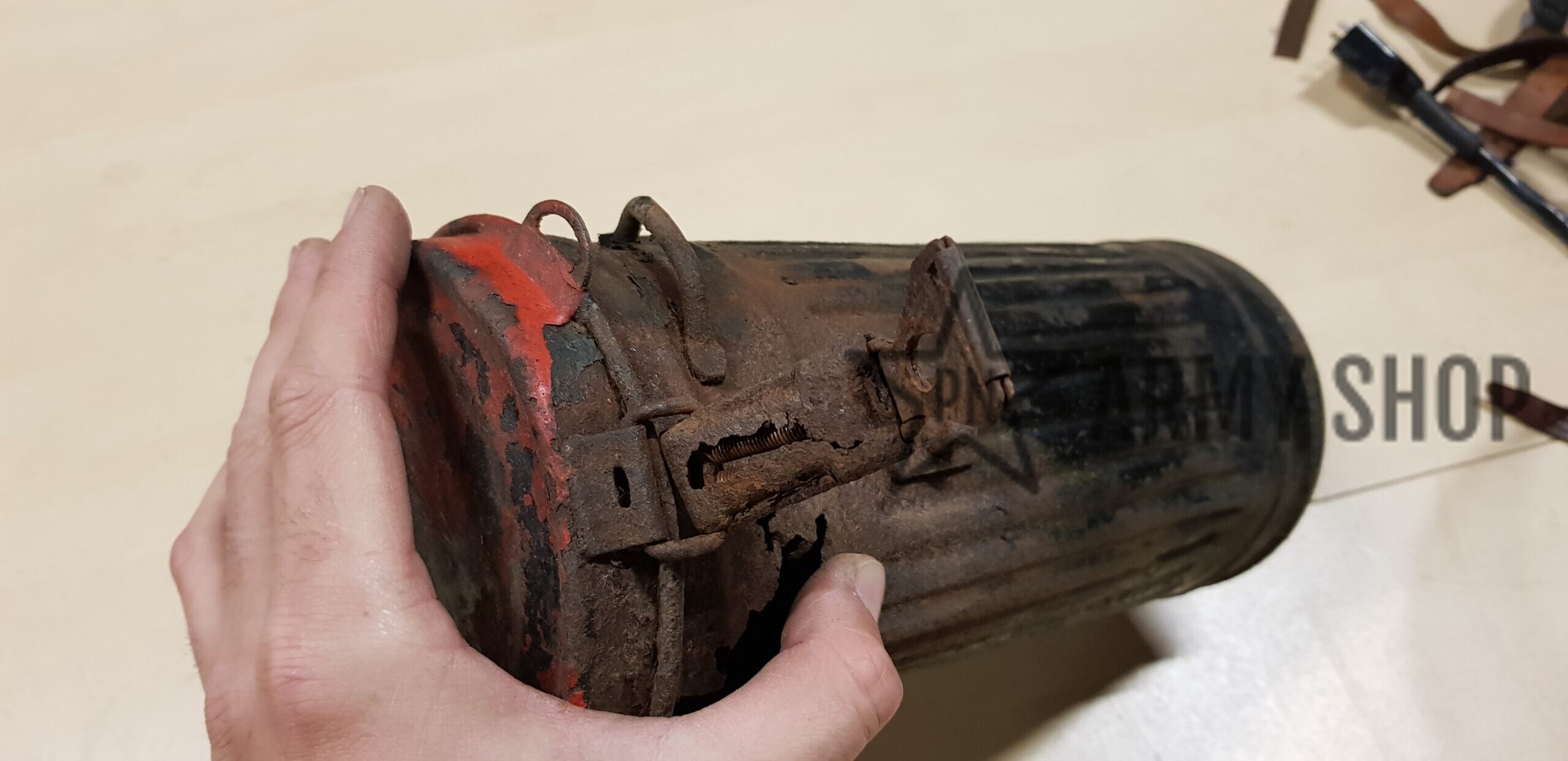 Futrál na německou plynovou masku, konkrétní kus viz fotografie, poškozený, nálezový stav co vidíte to obdržíte