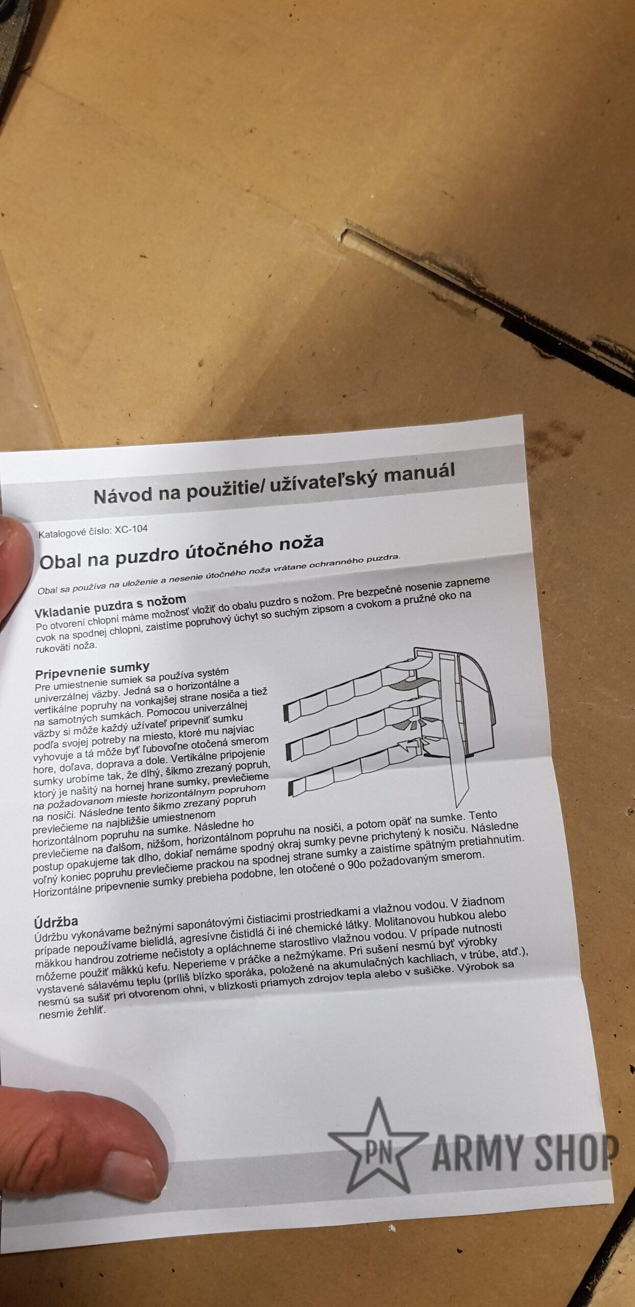 nůž je zajištěn popruhem se zapínáním na druk