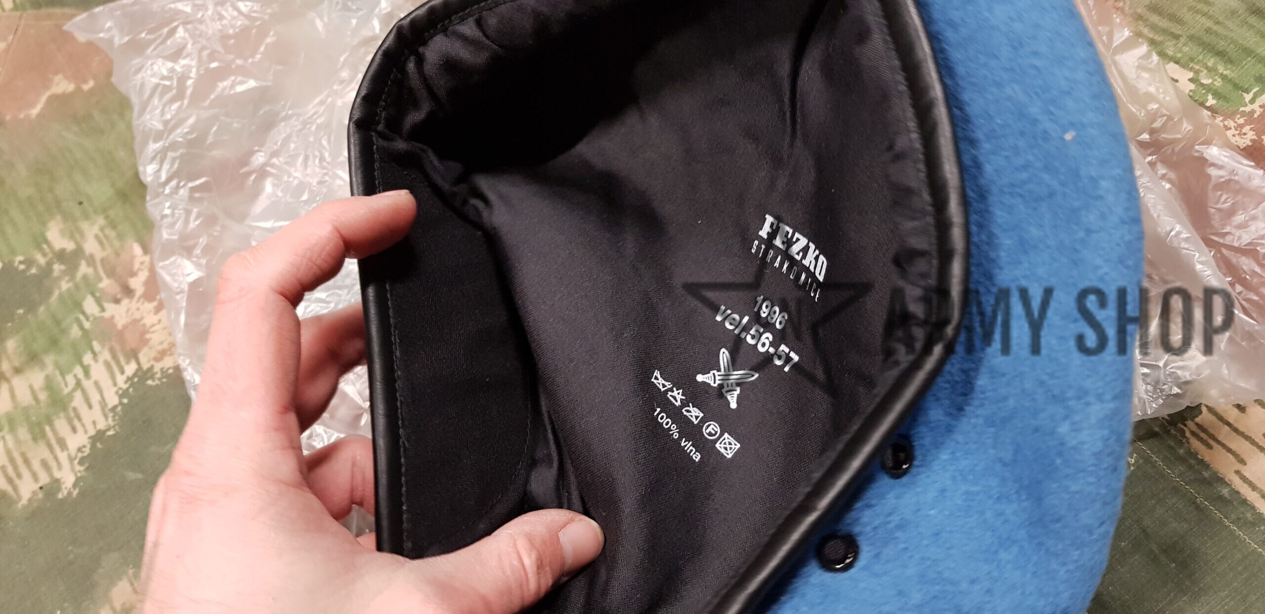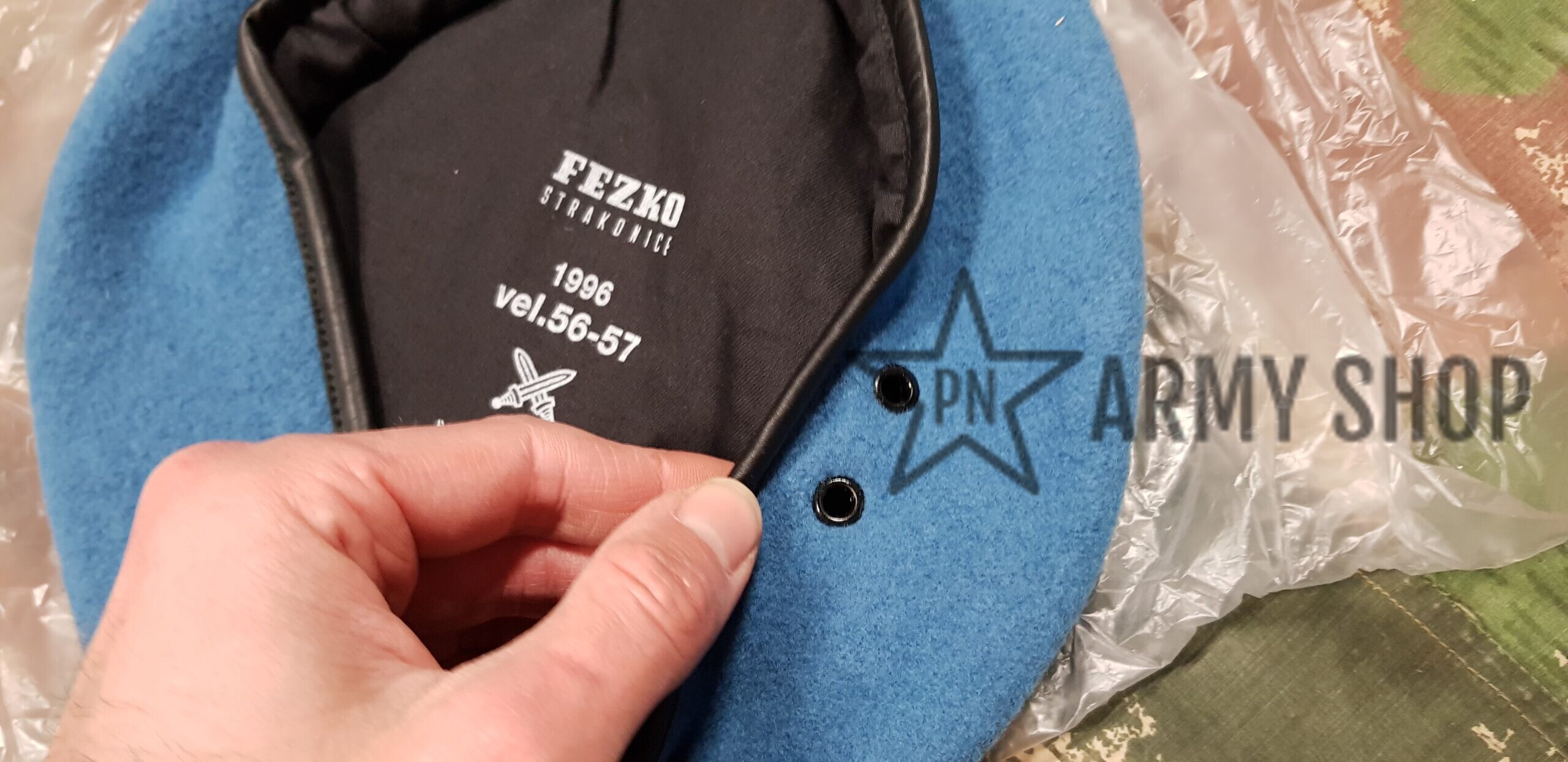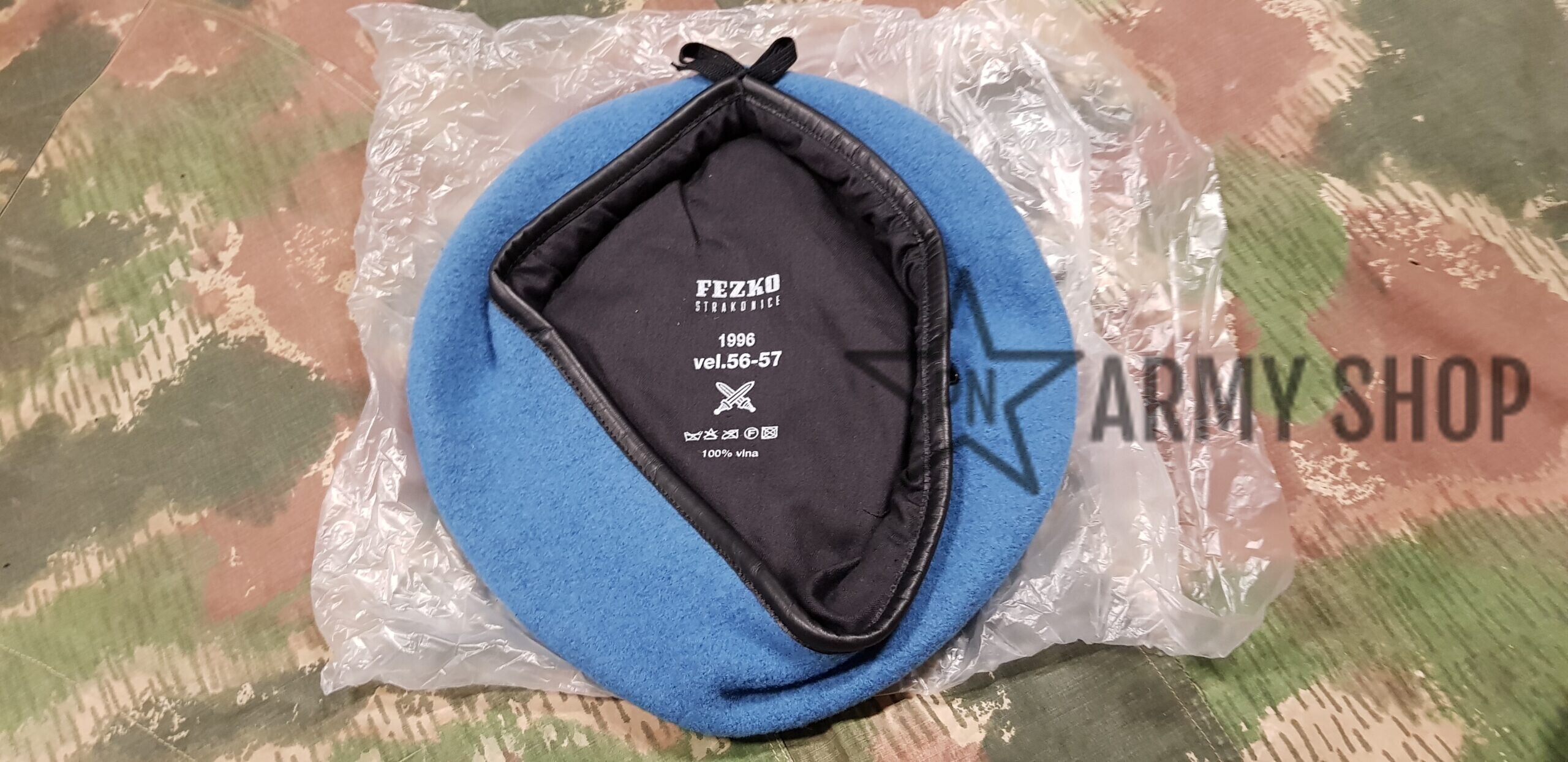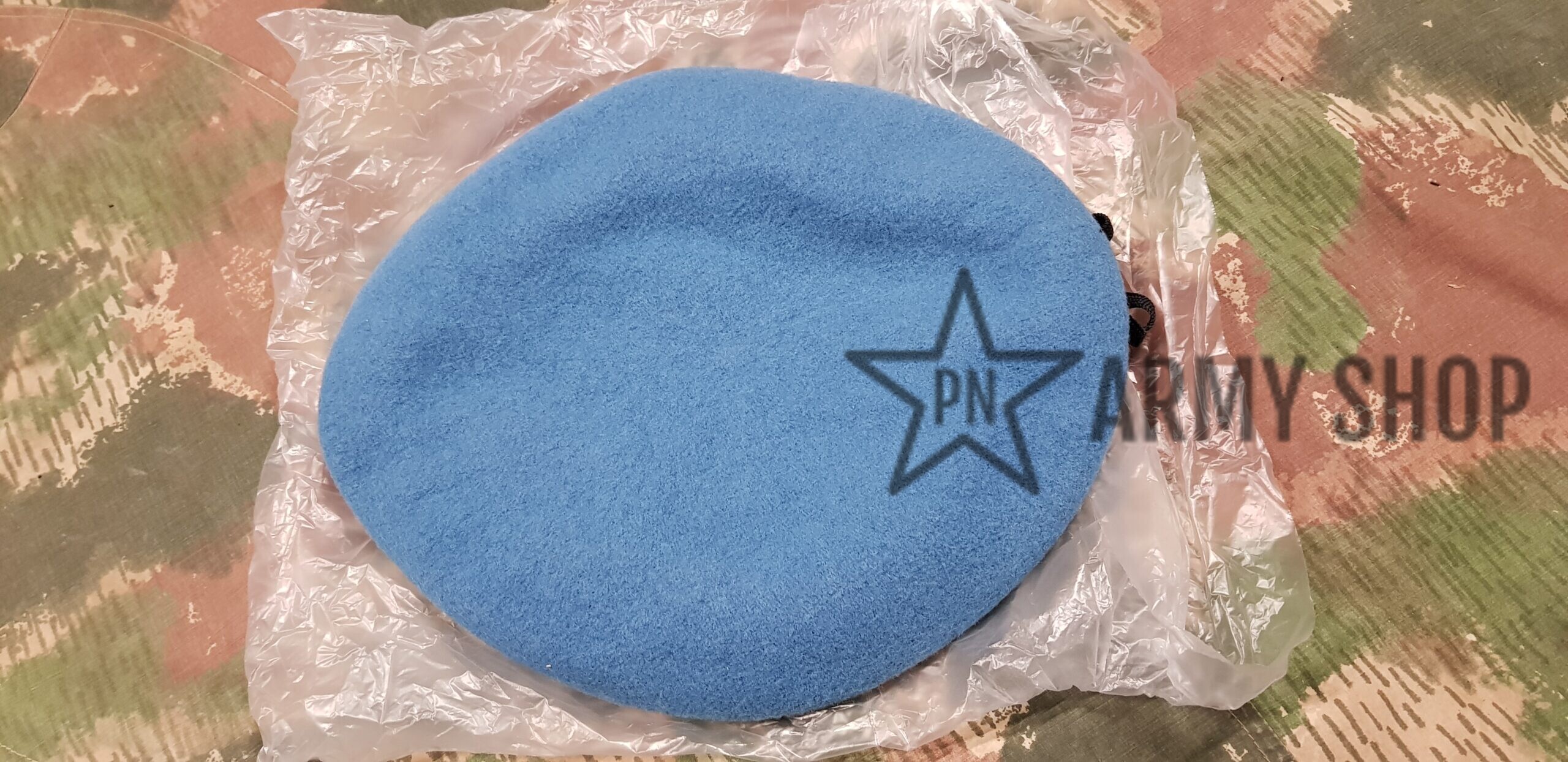 Nepoužitý světlemodrý baret ačr pro mise UN Unprofor, z vyřazených zásob ačr, konkrétní nafocený kus