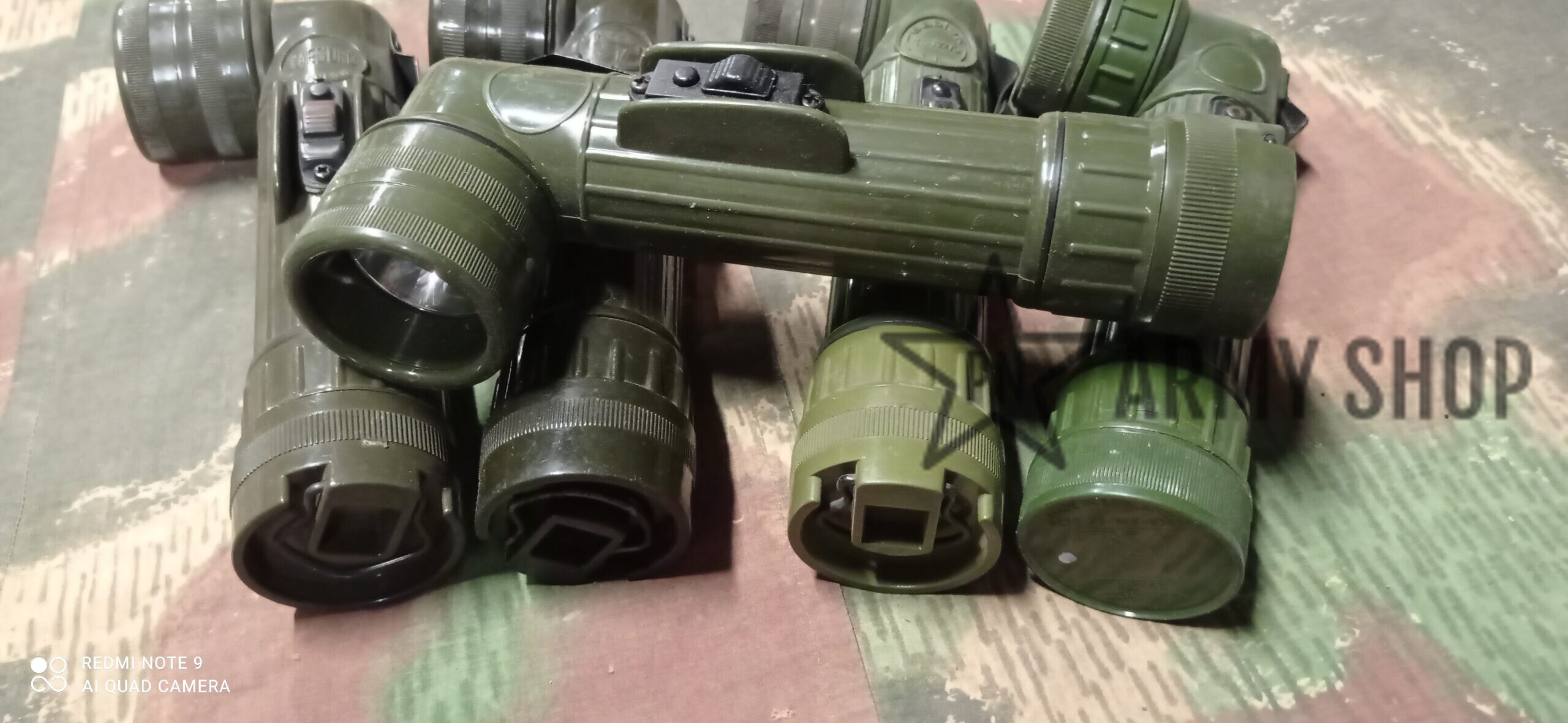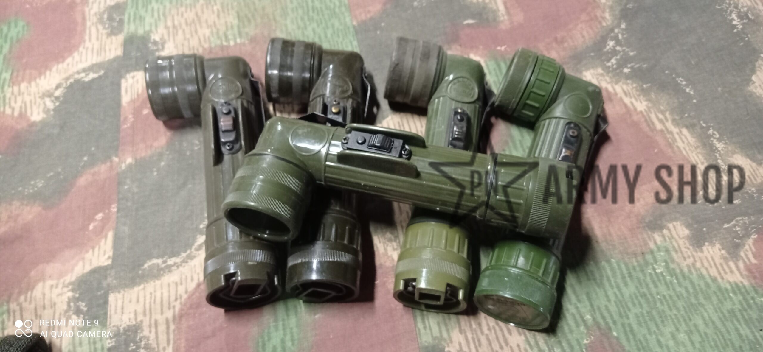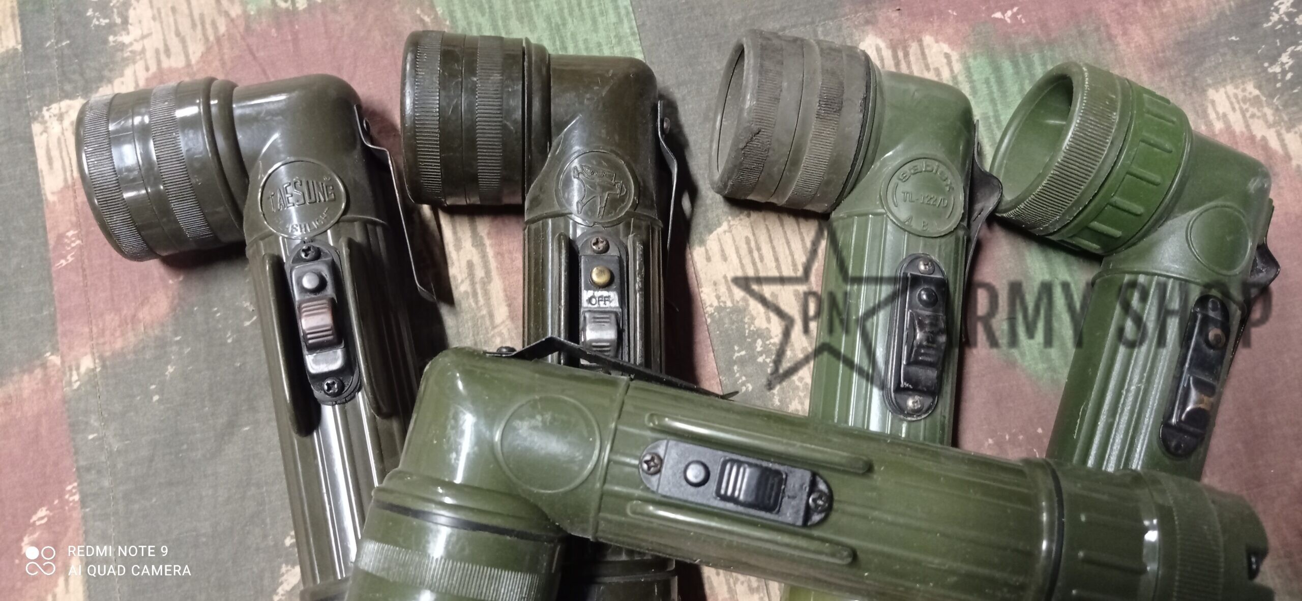 Použitá vojenská svítilna, dle vzoru USA, vyřazený armádní materiál po německé/francouzské armádě, bez baterií, viz foto, cena za kus, různé modely